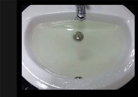 Chỉ sau 4 phút xả nước ra bồn, nước chuyển màu vàng đục, mùi tanh |