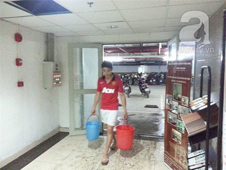 Ông bố trẻ này xuống tầng hầm để xách nước lên cho gia đình (Ảnh: BG) |