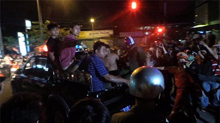 Lúc 19h, hàng trăm người dân tập trung trước nhà hàng tiệc cưới theo dõi vụ việc